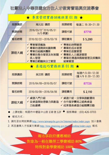 ※ 參訓費用: $2,110 元(具勞工身份者可補助80%)